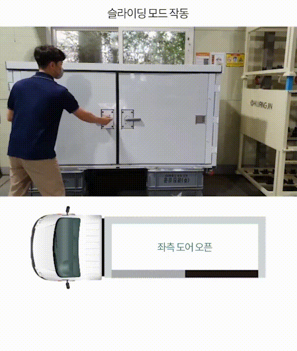 우리나라 택배 운송의 대부분을 차지하는 봉고/포터 등의 트럭의 적재함에서 물건을 꺼내고 집어넣는 것에는 늘 어려움이 있었습니다. 짐이 많을수록 옆으로 꺼내면 편하긴 한데 측면 도어는 대부분 슬라이딩 방식인지라 일정 크기를 넘는 물건은 불편하지만 뒤쪽에서 순서대로 꺼내야 했죠.