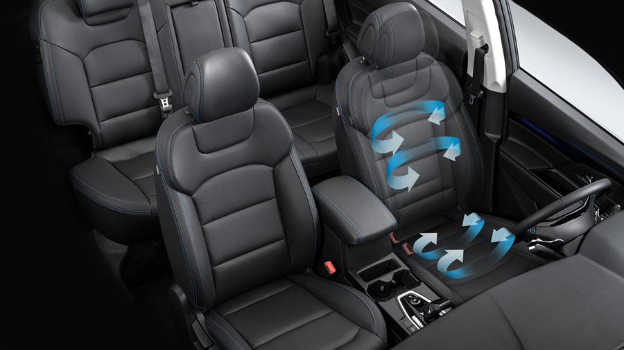 기존의 코란도 차량이 큰 인기는 못 얻었지만 내부 공간 면에서 부족함은 없었죠. 택시로 나오는 차량이다 보니 기사를 위한 운전석 엉따/등따를 강조하고 있네요.
