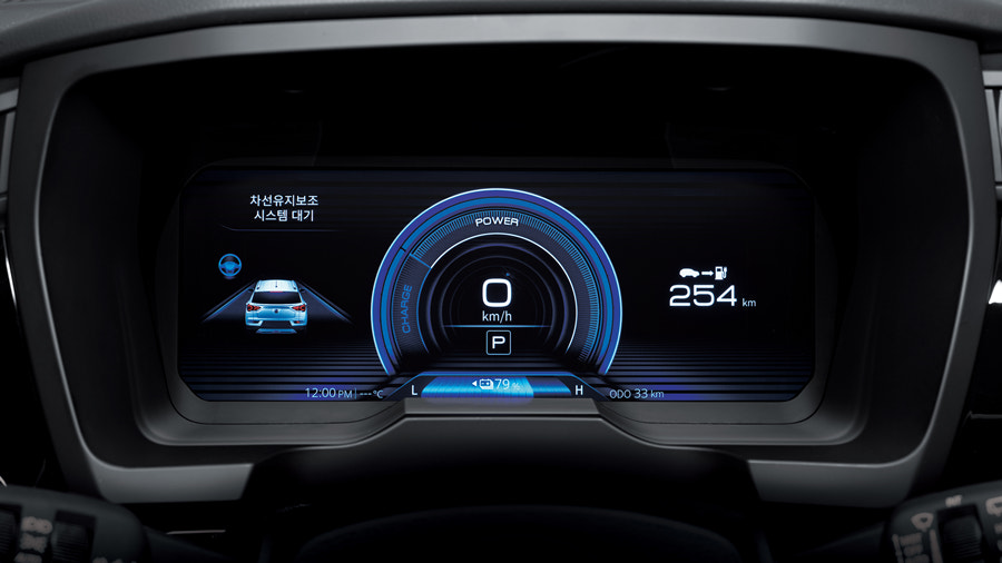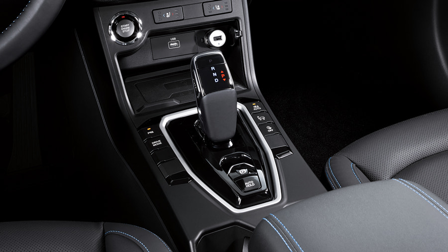 인테리어는 원래의 코란도와 큰 차이는 없습니다. 일반적인 내연기관 오토매틱 차량 같은 기어 봉이 있네요. 다이얼 식보다는 편합니다만 공간을 좀 차지하죠.