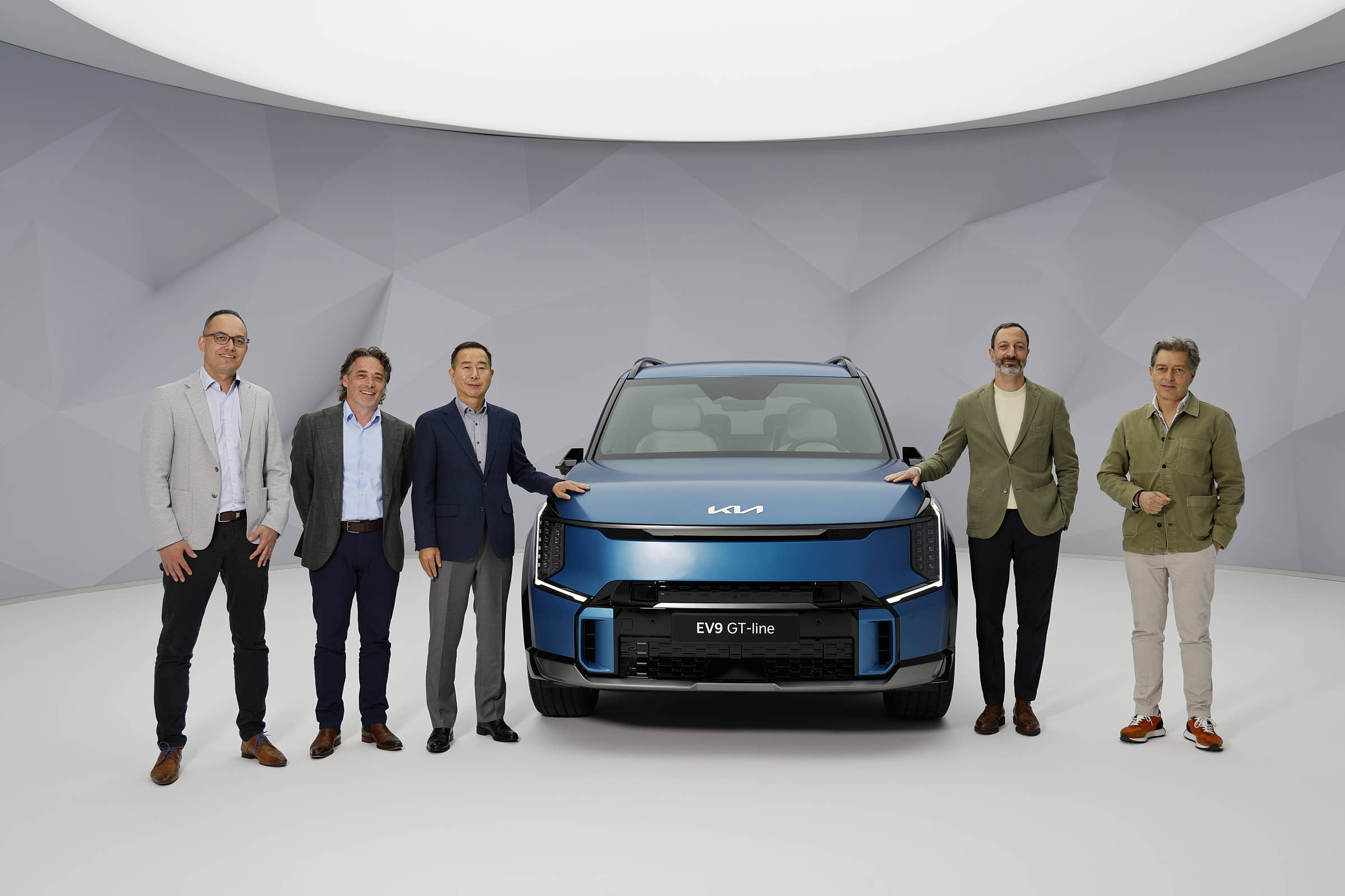 유럽형 EV9은 올해 하반기 현지 출시를 앞두고 주력 외장 색상으로 오션 매트 블루를 내세웠으며 일부 전면 디자인이 한국, 미국 모델과 차별화되었습니다.